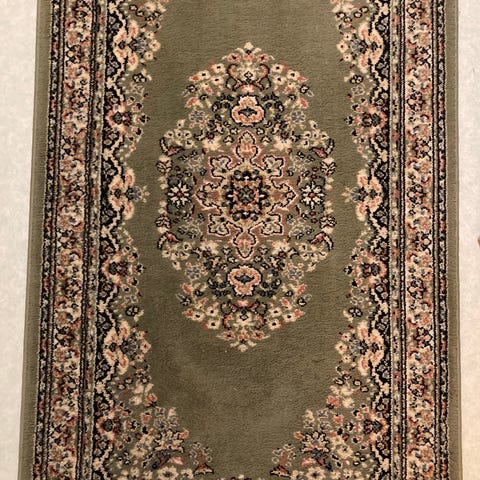 Maton koko: 200cm x 285cm. Maton yksi kulma käpristynyt, mutta sen todennäköisesti saa taivutettua takaisin. Matto pesty viime kesänä. Asunnossani ei asu lemmikkieläimiä.