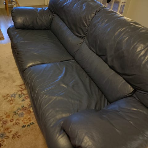 Vepsäläiseltä ostettu laadukas nahkakulmasohva. Noin 12 vuotta vanha täysin ehjä tuote. Koirakoti.