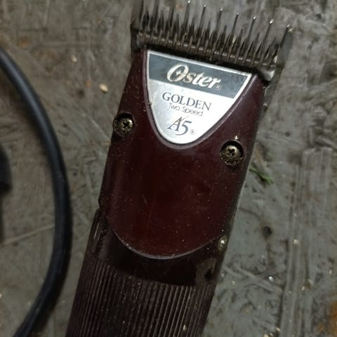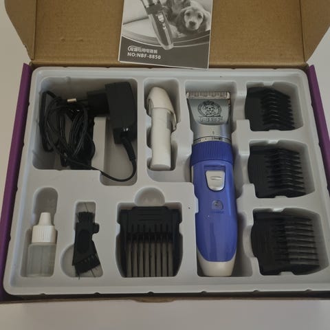 Käsikäyttöinen eläinten trimmaukseen tarkoitettu työkalu.