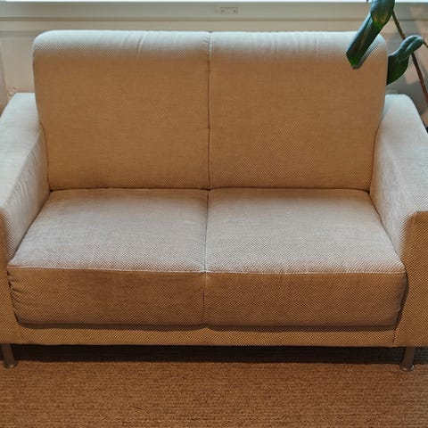 Punainen 2-istuttava sohva, täysin ehjä. Toisessa käsinojassa on tummentumaa. Annetut mitat ovat noin mittoja. Vain nouto ja omat kantajat tarvitaan. Myydään muuton takia pois. Voi tehdä myös ostotarjouksen.