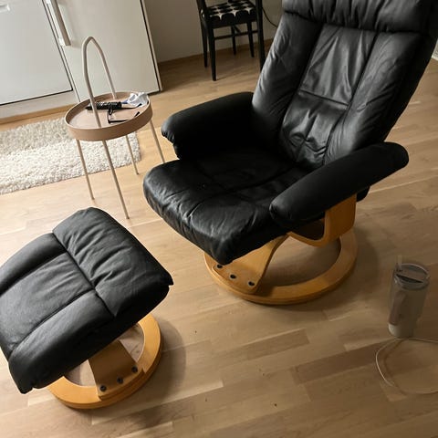 Selling a comfortable and sturdy recliner armchair with footrest, in good condition. Timeless design, perfect for relaxing, reading, or watching TV.
