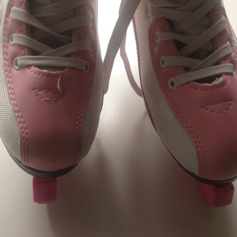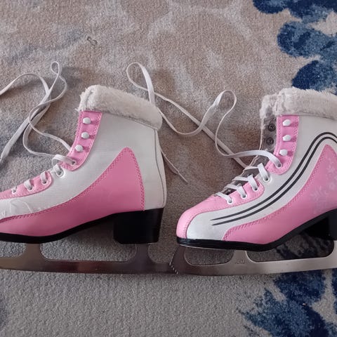 Princess Pink luistimet, koko 38. Värit vaaleanpunainen ja valkoinen. Materiaalina käytetty kestäviä ja lämpimiä materiaaleja, jotka tarjoavat mukavuutta ja suojaa.