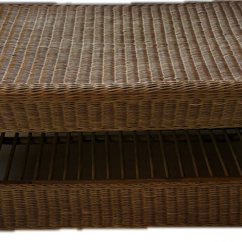 Pyöreä sohvapöytä, puukantinen, rottinkia, vintage