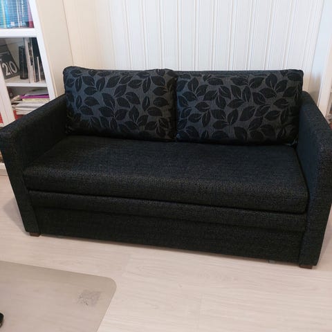 Myydään metallisella rungolla levitettävä vuodesohva. Pientä kulumaa paikoin metallissa. Patjat eivät sisälly kauppaan.