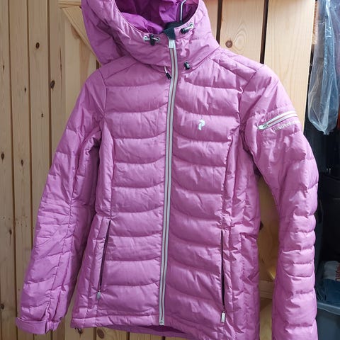 Peak Performancen untuvatakki. Todella hyvässä kunnossa, eikä näkyviä käytönjälkiä. Koko on lasten 170cm, mutta itse S kokoisena menee minulle hyvin.