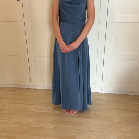 Vaaleansininen naisten iltapuku koko 34, häämekoksi, vanhojentanssehin
