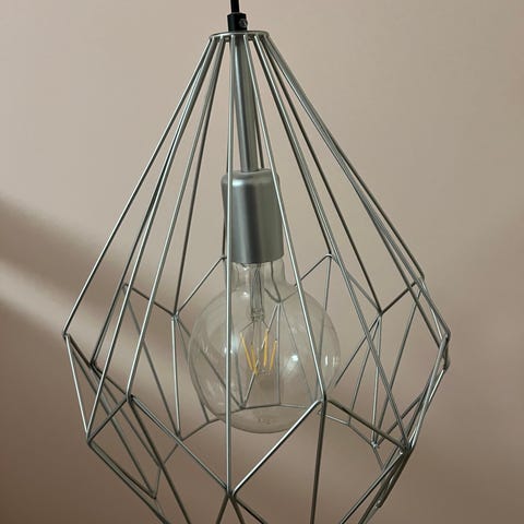 Kuparin värinen valaisin. Just otettu katosta pois, en löydä mitään vikaa.