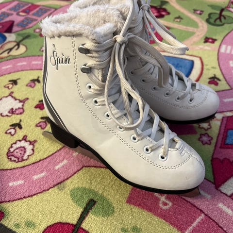Spin-luistimet koossa 35. Ulkopinnassa on käytön jälkiä. Terät hyvässä kunnossa. Pohjallisen pituus 23 cm.