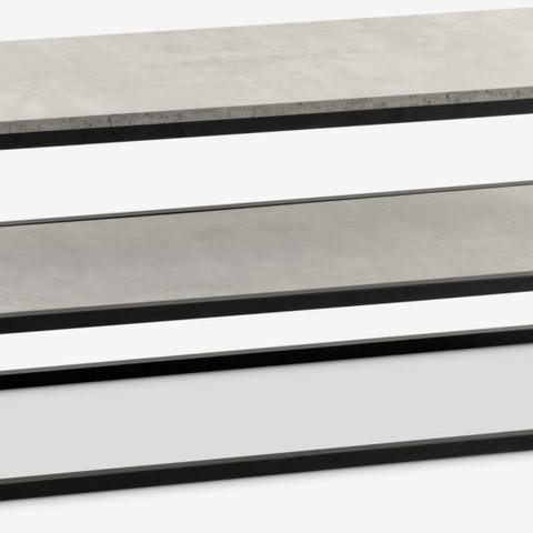 Betoninvärinen DOKKEDAL sopii TV-tasoksi tai modernilla tyylillä myös leveäksi sohvapöydäksi.