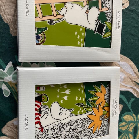 Myydään Arabian Koristepuu (151x189mm) Muumimamma ja Muumipappa seinätaulut (2014) yhdessä.