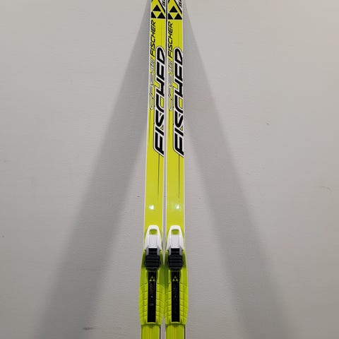 Fischer RCR 162 cm NNN-siteet, joista toisen kiinnityssalpa on katkennut. Kiinnitys ja avaaminen kyllä onnistuu esim. kolikkoa apuna käyttäen mutta vaatii hieman sormivoimaa.