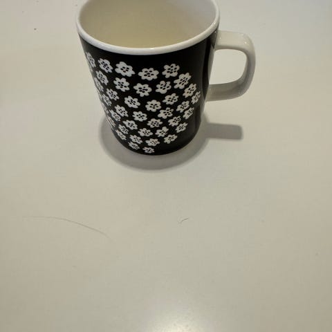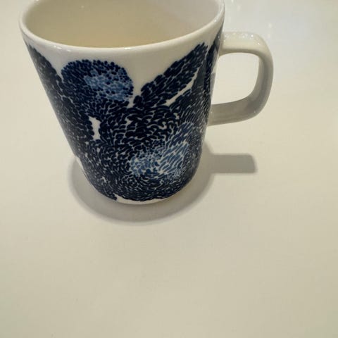 Marimekko Siininen muki, sinivalkoinen väri. Materiaali keramiikka. Soveltuu käytettäväksi juomien tarjoiluun.