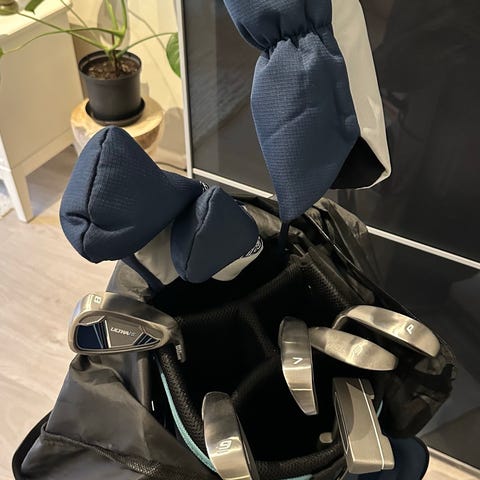 Aloittelijalle sopiva golfsetti, mailoissa anteeksiantava grafiittivarsi. Kätisyys: Oikea