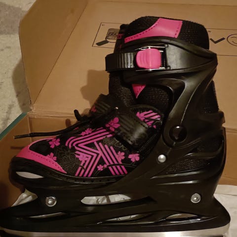 Lasten luistimet, joissa kokoa voi säätää (koot 29-32). Hyväkuntoiset, ehjät.