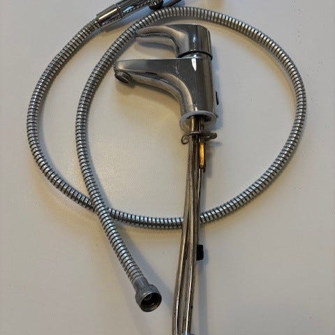 Oras kylpyhuoneen hana bideesuihkulla. Käytön jälkiä, mutta toimiva.