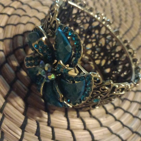 Yhtenäinen pitkä rautalangasta taivutettu niin että ranteeseen tulee kauniina kolme riviä korua. Keramiikka helmiä. Punaisen oranssia sävyä