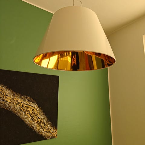 Valkoinen roikkuva valaisin. Halkaisija n. 25 cm halkaisija, korkeus n. 35cm