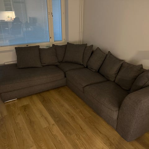 Helppo imuroida ja huoltaa. Tätä sohvaa on pidetty hyvänä, ja kangasta huollettu tasaiseen.