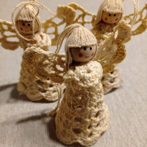 Virkatut enkeli-, sydän ja tähtkoristeet: