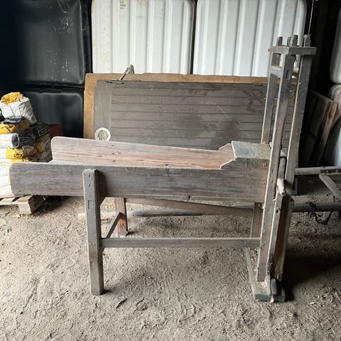 Myydään vanha käsikäyttöinen olkisilppuri, valmistaja P. Sidorow, Helsinki (Helsingfors). Alkuperäinen valmistajan metallikilpi on tallella.