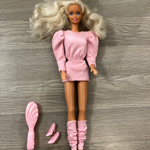 Kaikki osat ovat ehjiä ja hyväkuntoisia, pieniä ikäkauden jälkiä saattaa olla. Täydellinen lisä vintage-Barbie-kokoelmaan tai retro-leikkeihin.