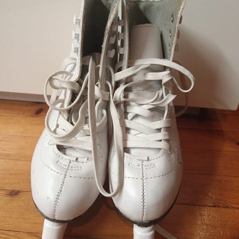 Käytetyt luistimet ja käytönjälkeä pinnassa, mutta ehjät, suht siistit kuitenkin. Koko n 37. Kuvassa näkyy pohjallisen mitta. Jämäkkä varsi ja sisällä pehmustetta. Muistaakseni teroitettu viime talvena.