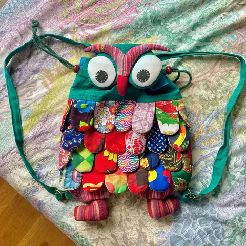 Paljon käytetty ja lapsen rakastama pöllölaukku, yhä käyttökelpoinen, osat toimivat, sisältä siisti, viat näkyvät kuvissa. Nouto.