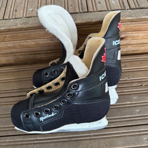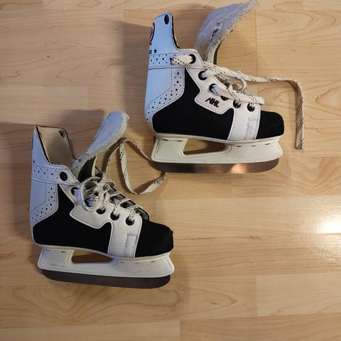Kid's Tackla Jääkiekko luistimet, lasten koko 29. Luistimet on suunniteltu jääkiekon harrastamiseen ja niissä on perinteinen nauhakiinnitys. Väri musta ja valkoinen, sisävuori pehmeää materiaalia. Sopivat lapsille, jotka aloittavat jääkiekon tai harrastavat sitä säännöllisesti. Toisen luistimen kankaassa reikä.