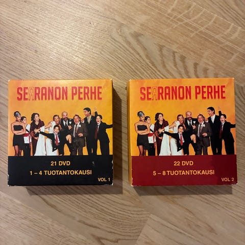 Hyväkuntoiset DVD-levyt suositusta Serranon perhe sarjasta. Kivaa viihdettä nyt pikkurahalla.