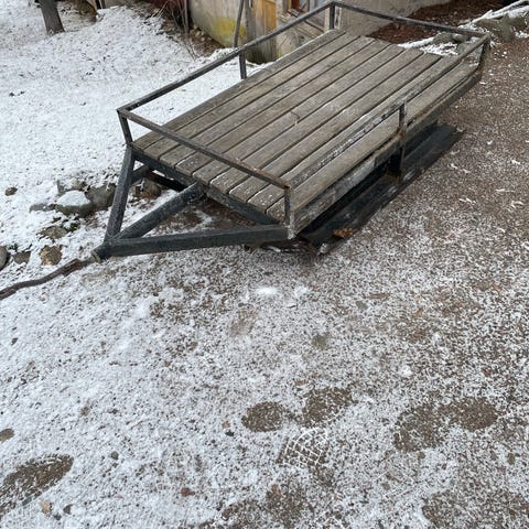 Etsinnässä reki tavaran ja polttopuiden kuljetukseen saareen. Parireki ei käy.