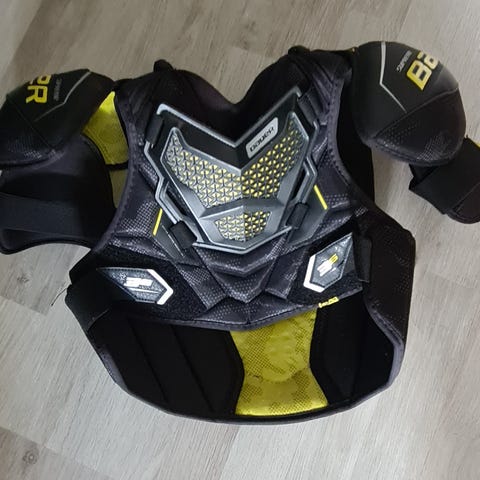 Bauerin varusteita, rintapanssari, housut, kyynärsuojat, 10v.n kokeilun jäljiltä, juuri kokeiluun ok vanhempi setti
