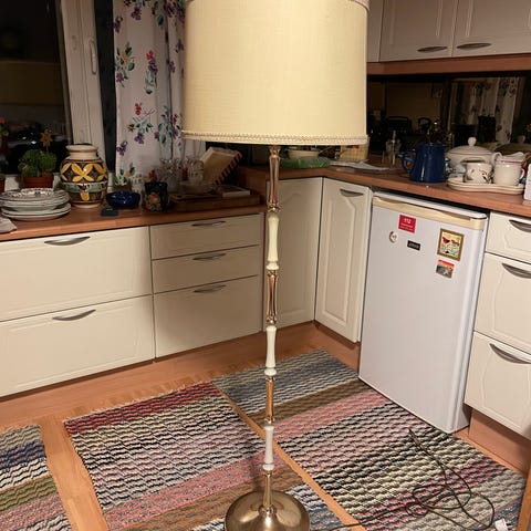 Punainen retro lattiavalaisin. Liikuteltavat lamput. Hyvässä kunnossa, mutta maalipinnassa hieman kulumaa.