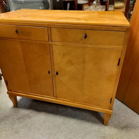 Teak lipasto 60-luku. Joitain Käytön jälkiä. Pinnassa toisessa reunassa ilmeisesti veden aiheuttamia pientä röpelöisyyttä, ei rikki. Kuvan mukaisia jälkiä. Jalkoja voidaan lyhentää ostajalle jos haluaa matalamman. Avain laatikkoon. Nouto, kuljetus sovittavissa.