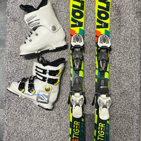 Myydään pieneksi jäänyt vauhdikas ihastuttava laskettelusetti uusiin laskuihin, sis. Elan laskettelusukset 100cm ja Salomon laskettelumonot 20-20,5/247mm.