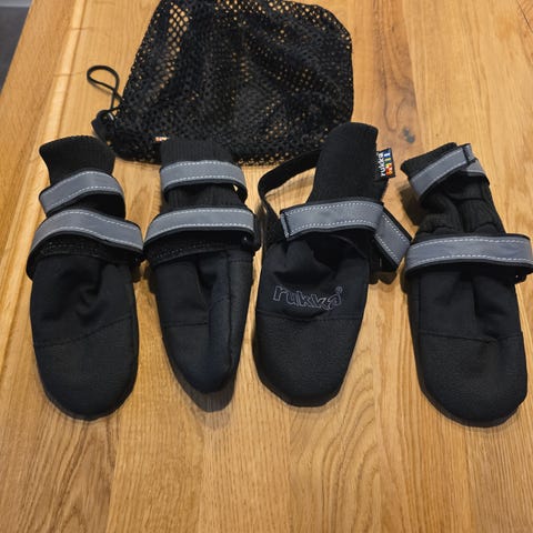 Rukka merkkiset koiran ulkotossut koossa 4, kaksi tossua. Nämä käyttämättömät. Pienelle koiralle.