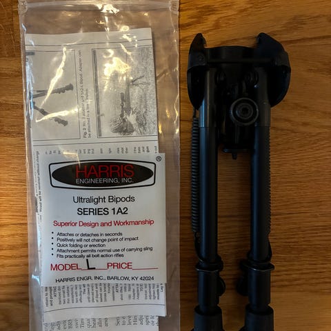 Käytetty Oulun työstökeskusken tekemä bipodi. Laajat säädöt (sektori, kallistus, teleskooppiset jalat jne..), pikalukituksella irrotettava. Kevytrakenteinen. Laadukas tuote, joka toimii erinomaisesti kiväärissä esim latvalinnustuksessa.