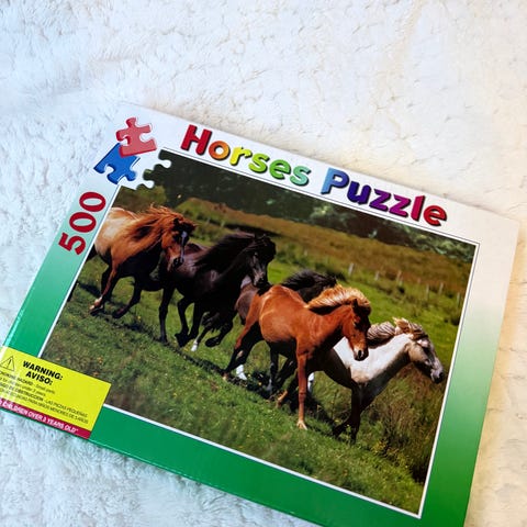 Puzzleball 3D palapeli, halkaisija 7 cm, hevosen kuva. Palapeli sisältää 60 palaa ja on tarkoitettu kokoamiseen kolmiulotteiseksi palloksi.