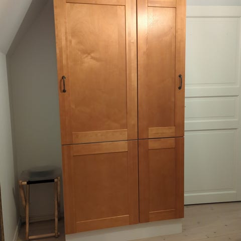 Kätisyys nyt outo, mutta vaihdettavissa helposti. 40cm leveä rekkikaappi sekä 60cm leveä usealla hyllyllä.