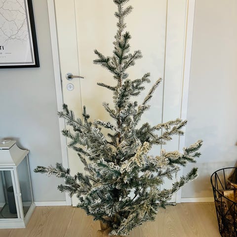 Myydään meille liian iso joulukuusi. Kasasimme sen siksi lasitetulle terassille. Korkeutta 210cm, leveyttä 140cm.