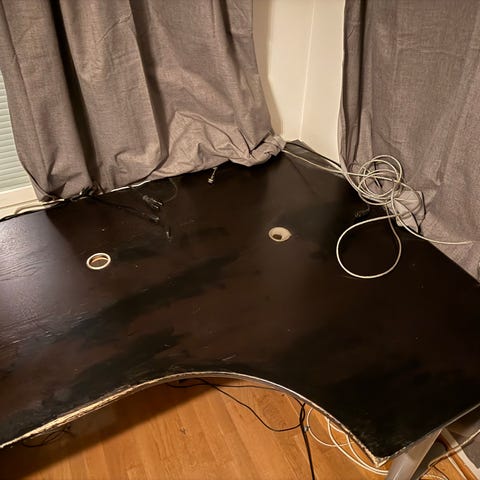 Pöytä tietokoneelle tai mille vaan. Ulos vedettävä näppistaso. Syvyys enimmillään 62cm. Pöytätasossa muutamia naarmuja etu ja takaosassa. Yleisilmeeltään kuitenkin siisti ja tukeva.