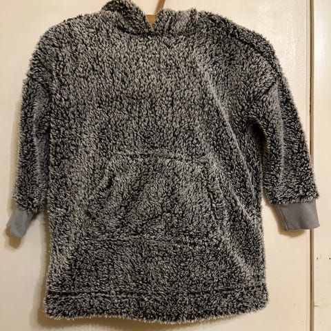 Kuvan huppari jossa karva hupun suussa.
