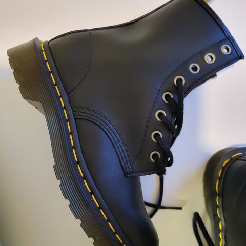 Dr. Martens Vegan 1460 Bex Mono nauhamaiharit, koko 37, musta väri. Ovh 200€. Kenkälaatikko mukaan. Yksi pieni naarmu yhdessä kengässä (ks. viimeinen kuva), muuten tosi hyväkuntoinen.