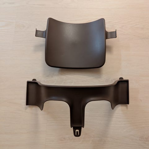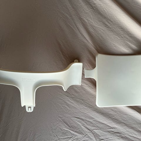 Stokke Tripp Trapp syöttötuolin baby set lisäosat V3. Selkänoja, turvakaari, istuimeen kiinnitettävä tarjotin & kaatumisen estot jalkoihin. Turvakaaren sisäpuolella pientä kulumaa, muuten kunto erinomainen.