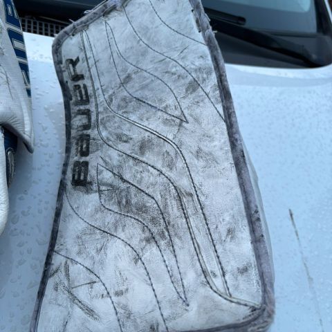 Myydään Bauer GSX maalivahdin kilpi. Hanskassa sormien kohdalla kaksi pientä reikää.