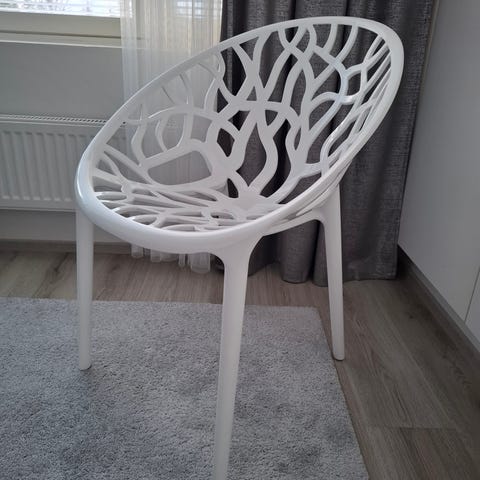 Valkoinen Crystal tuoli, ollut vähällä käytöllä. Materiaali muovi.