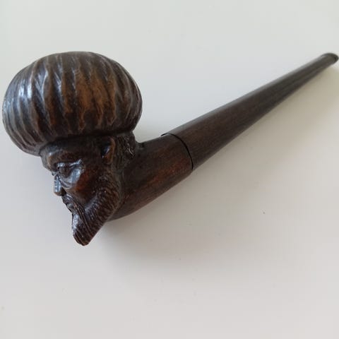 Hopea vyötäröstä piippua ollut käytössä 60-luvulla, sen jälkeen ollut keräilynä koristeena seinällä. Piiput putsattu.