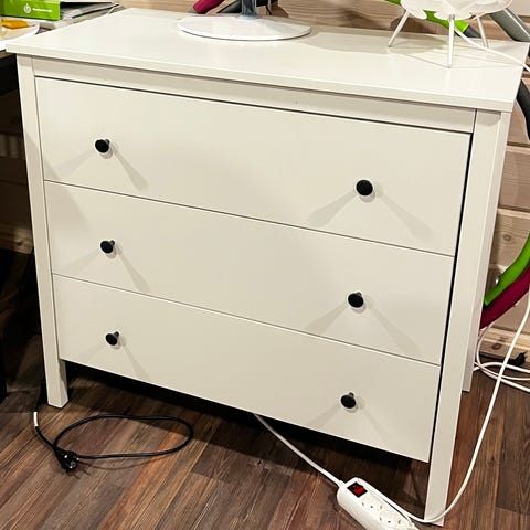 Puhdas ja Hyvä kuntoinen valkoinen ikean lipasto, lipaston kannessa pieni kohouma näkyy kuvassa, ei ole haittaa käytössä. Laatikot hienossa kunnossa sisältä myös.