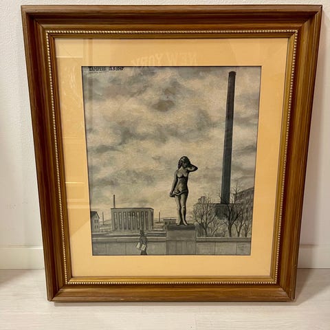 Pispala-aiheinen taulu, Antti Ylikesti 1994, koko 44cm x 45cm