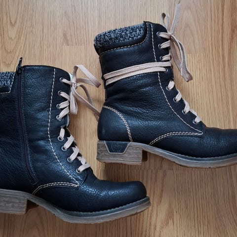 Ihan hyväkuntoiset nilkkurit. Karvavuori hieman värjäytynyt ja litistynyt, niinkuin niille yleensä käy. Muutoin ei juuri käytönjälkiä.
