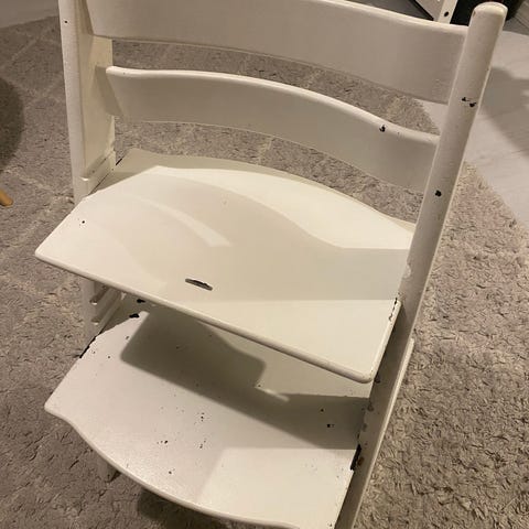 Ostetaan valkoinen tai harmaa stokke tripp trapp syöttötuoli. Lisäosille ei ensisijaisesti ole tarvetta mutta tuoliin tulisi sopia baby set.